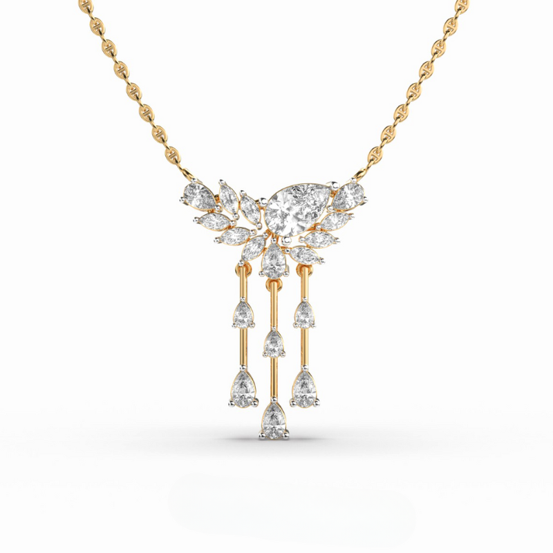 Trio Pear Diamond Drop Necklace
